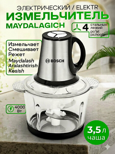 {"widgets":{"@light/ProductM2bEdoOnlyBadge":{"/content/page/fancyPage/defaultPage/m2bEdoOnlyBadge":{"wrapperProps":{"margins":{"top":"2"}},"isM2bEdoOnlyEnable":false}}},"meta":{"/content/page/fancyPage/defaultPage/m2bEdoOnlyBadge":{"name":"@light/ProductM2bEdoOnlyBadge"}},"collections":{"views":{"defaultOffer":"vi_5358304910866429847_bi_6593413673870751679"},"viewItem":{"vi_5358304910866429847_bi_6593413673870751679":{"id":"vi_5358304910866429847_bi_6593413673870751679","composeId":"5358304910866429847","buyOptionId":"bi_6593413673870751679"}},"buyOption":{"bi_6593413673870751679":{"id":"bi_6593413673870751679","title":"Чоппер-измельчитель, Bosch BS-888, нержавеющая сталь, 3л, мощность 4000Вт","offerId":"EL73InVjPOTxU6sanBoFVw","slug":"chopper-izmelchitel-bosch-bs-888-4000vt-35l-3-skorosti","trackingLinks":{"cpa":"/PUi2zdinsT9MqRPUm-XZocr4-rr-","promotionUrl":"/sumaP1MRWnS4vuuP_2DLNl8romYy"},"skuId":"4916649787","productId":"4916649786","categoryId":"90601","navnodeId":"54946","departmentId":"54419","showUid":"17715606399143570697906001","counterStep":1,"minimum":1,"maximum":15,"price":{"value":179000,"currency":"UZS"},"vendorId":"16644882","feeShow":"OTNDnItfwRMlLJby2gHopaFy0BW380aFxIPlxXHq1OPrvkCOmnNHHgCqoyMEIoMU4QWFoxHuqu1J8qiqyeHiMFrOtjBcUkFvet31_iddqEakRNfbIzWmvwhM-wMvtF_7UBjh4-CEkSKQvbiVM0OcnS3BQaLHzXqCq-0p-wZLji36tCfwUImROwfvIDyyW30rE-M343_E2SnAayuAKiYYWazRCJBDnJtY8rQFGBz-W06lUnNEvcMIMXRWvusmGms0AwS33e_pPuvzYDODaQ8YwebpkpJBz7xbruvIRC8qmTWoCYALqUe_YQ,,","feedId":"58608817","feedOfferId":"58608817.maydalagich","shopId":"431782","supplierId":"216587227","businessId":"216587228","supplierName":"Lunex","businessName":"Lunex","hasAnySize":false,"hasAnyDelivery":true,"benefitTypeCode":"waremd5","basePrice":{"value":279000,"currency":"UZS"},"promos":[{"key":"9OsNHjk2ruqbrwMRwzDp8A","type":"empty-promo","shopPromoId":"cf_135723","anaplanId":"cf_135723","landingUrl":"https://market.yandex.ru/special/empty-promo-landing?shopPromoId=cf_135723"}],"flags":["isFbs","isOnDemand","isPartialCheckoutAvailable"],"analytics":{"warehouseId":"2072950","paymentType":"ANY","atSupplierWarehouse":true,"paymentMethodTypes":["BY_CARD_ONLINE","BY_CARD_TO_COURIER","IN_CASH"],"deliveryOptions":[{"deliveryType":"delivery","fromDate":1771819839,"toDate":1771819839,"priceInfo":{"value":0,"currency":"UZS"}},{"deliveryType":"pickup","fromDate":1771819839,"toDate":1771819839,"priceInfo":{"value":0,"currency":"UZS"}},{"deliveryType":"pickup","fromDate":1771819839,"toDate":1771819839,"priceInfo":{"value":0,"currency":"UZS"}},{"deliveryType":"delivery","fromDate":1771819839,"toDate":1771819839,"priceInfo":{"value":0,"currency":"UZS"}}],"shopSku":"maydalagich","placementType":"3P","ownMarketPlace":true,"shopSlug":"yandex-market","yandexBnplInfo":{"enabled":true},"promos":[{"key":"9OsNHjk2ruqbrwMRwzDp8A","type":"empty-promo","shopPromoId":"cf_135723","landingUrl":"https://market.yandex.ru/special/empty-promo-landing?shopPromoId=cf_135723","isPersonal":false,"description":"Новые_акции_для_лендингов_полок_УЗБ_Home_1201"}],"hypeBadge":{"hasBadgeRare":false}},"deliveryType":"DELIVERY","imageMeta":{"namespace":"mpic","groupId":14720117,"key":"2a0000019b5205a45b8a2fc9dd0440fb5079"}}},"market2Business":{"current":{"id":"current","isM2b":false}}}}