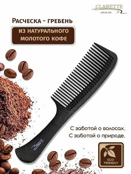 Расческа из натурального молотого кофе, Clarette эта уникальная щетка для волос произведена из материала, полученного из биологического сырья, а именно- натурального молотого кофе. Полное отсутствие в составе химических добавок и вредных для организма человека веществ. Высокие эксплуатационные характеристики: прочность, устойчивость к механическим воздействиям. Отсутствие вредных для окружающей среды последствий при утилизации продукции. Эргономическая форма ручки расчески, элегантный дизайн. Используется для расчесывания волос любого типа и длины, создания пробора и простых причесок. Экологичный продукт. Состав: молотый кофе. Размер: длина 20,5 см, ширина-4 см, глубина -0,5 см.
