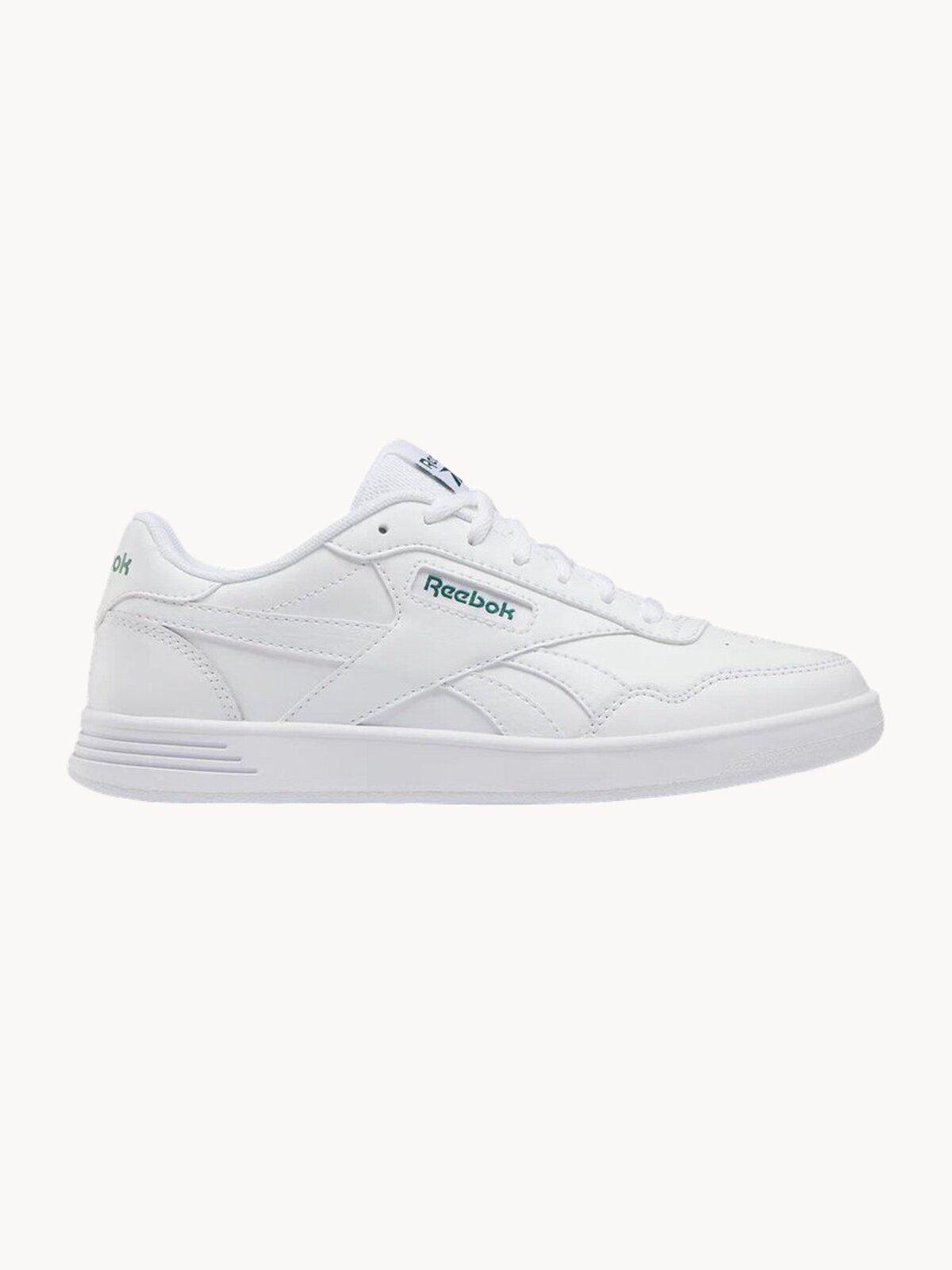 Кроссовки Reebok из линейки Court Advance W сочетают в себе стиль и комфорт. Они выполнены в классическом белом цвете с зелеными акцентами. Доступны в размере 6,5 US и полноте F.