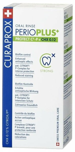 Жидкость - ополаскиватель CURAPROX Perio Plus Protect, с содержанием хлоргексидина 0,12%. Рекомендовано для эффективного контроля патогенных микроорганизмов полости рта. Благодаря сочетанию компонентов быстро замедляет процесс формирования биопленки на зубах, обеспечивает противовоспалительное и противокариозное действие. Используется в послеоперационный период, предотвращает послеоперационные осложнения. Оказывает антибактериальный эффект. Замедляет процесс формирования биопленки. Не изменяет цвет эмали зубов, не окрашивает. Для усиления эффекта лечения рекомендовано применение ополаскивателя с зубной пастой PERIO PLUS SUPPORT PPS709. Особые примечания: Не глотать. Только для наружного применения. Применять под контролем врача-стоматолога. Хранить в недоступном для детей месте. Номинальное количество: 200 мл.