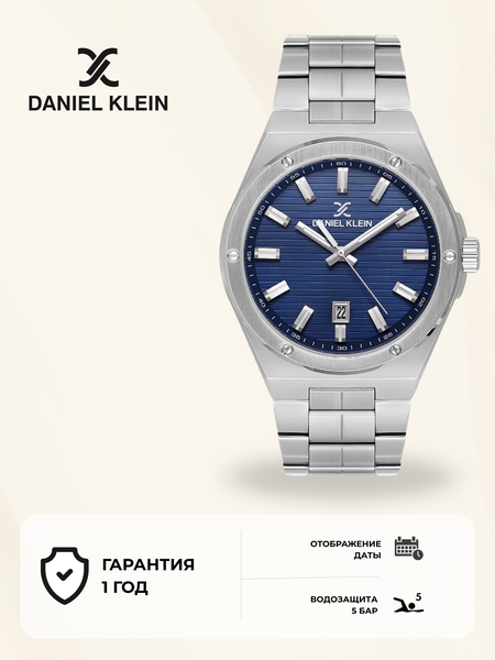 Кварцевый механизм обеспечивает точность и надежность хода, а также экономичность в использовании. Корпус и браслет часов выполнены из нержавеющей стали, что гарантирует их долговечность и устойчивость к коррозии. Циферблат с аналоговым отображением времени и стрелками придает часам классический и элегантный вид. Особенностью модели является ее водонепроницаемость класса WR50 (5 атм), что позволяет носить часы в любую погоду, не опасаясь попадания влаги на механизм. Ремешок шириной 23 мм и корпус диаметром 41 мм обеспечивают комфортное ношение на руке. Вес часов составляет всего 100 г, что делает их практически невесомыми на запястье. Модель относится к коллекции Premium, что подчеркивает ее высокое качество и стиль. Производство часов осуществляется в Гонконге, а бренд Daniel Klein зарекомендовал себя на рынке как надежный и качественный производитель.