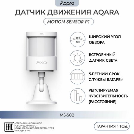 Инновационный датчик движения AQARA MS-S02 Motion Sensor P1 обеспечивает безупречное обнаружение активности в вашем доме. Ключевой особенностью версии P1 является настраиваемый тайм-аут обнаружения (от 1 до 200 секунд), что исключает задержки в срабатывании автоматизаций. Благодаря современному протоколу Zigbee 3.0 и питанию от двух емких батарей CR2450, датчик демонстрирует рекордную автономность — до 5 лет работы без замены элементов питания. Устройство AQARA обладает широкой зоной охвата: угол обзора составляет 170° на расстоянии до 4 метров и 150° на расстоянии до 7 метров. Компактные габариты (ø33,1х41,6 мм) и ножка с возможностью поворота на 360° позволяют зафиксировать датчик в любом удобном положении. Встроенный датчик освещенности дает возможность создавать сценарии энергосбережения, например, включая свет при движении только в темное время суток. Три режима чувствительности помогают настроить дальность срабатывания, минимизируя вероятность ложных тревог. Датчик P1 полностью совместим с популярными экосистемами (HomeKit, Яндекс. Алиса, IFTTT) и поддерживает стандарт Matter через обновление хаба Aqara. Устройство AQARA MS-S02 надежно работает в диапазоне температур от -10° до +55°С. Для работы в системе умного дома обязательно наличие Центра управления (хаба) с поддержкой Zigbee 3.0. AQARA MS-S02 — это незаменимый элемент умного дома, который обеспечивает комфорт, безопасность и энергоэффективность без лишних хлопот с обслуживанием.