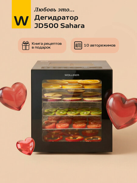 Достоинства:Бесшумно работает. Большая вместимость Недостатки:Я считаю, что у модели вроде Wollmer JD500 «минусы» — в основном условные, и всё зависит от того, как ты планируешь использовать дегидратор. Комментарий:Недавно купил дегидратор Волмер, и он полностью оправдал ожидания! Устройство работает тихо, температура регулируется очень точно, что позволяет идеально сушить фрукты, овощи, мясо и даже зелень. Поддоны вместительные и легко моются, а сам прибор не занимает много места на кухне.