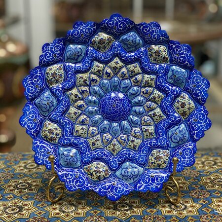 Декоративная тарелка "Минакари" представляет собой уникальное произведение искусства, созданное в древней столице Ирана, городе Исфахан. Это изделие ручной работы, выполненное в технике иранской расписной эмали "Минакари". Техника "Минакари" заключается в покрытии металлической основы (золота или меди) эмалью. Это создает уникальный рисунок, который никогда не повторяется и является результатом ручной работы персидских мастеров. Тарелка выполнена в светло-синем цвете, что придает ей изысканный и элегантный вид. Диаметр изделия составляет 25 см, что делает его достаточно большим для подачи разнообразных блюд. Декоративная тарелка "Минакари" может стать отличным подарком для любого человека, независимо от его пола, возраста или статуса. Она будет уместна на любом празднике, будь то новоселье, Новый год или просто приятный сюрприз для близкого человека. Приобретая тарелку "Минакари", вы получаете не просто предмет посуды, но и произведение искусства, которое будет радовать вас и ваших гостей своим неповторимым дизайном и качеством исполнения.