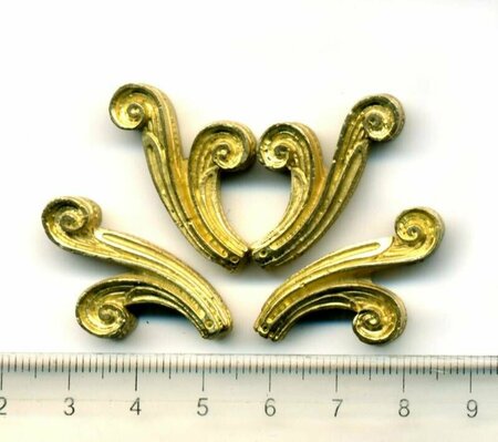 Декоративный литой металлический элемент в форме завитка. Полная длина около 30 мм. Любителям модельного дела компания AMATI предлагает декоративный аксессуар. Он выполнен в виде металлического завитка желтого цвета и способен стать отличным украшением макета. В моделировании оформление занимает важное место, позволяя грамотно дополнить изделие и повысить его уровень. Размер представленных завитков составляет 30 мм, давая возможность использовать их даже для декорирования масштабных произведений. При создании аксессуаров использовалось новейшее оборудование. Завитки отлично сочетаются со всеми оттенками древесины.