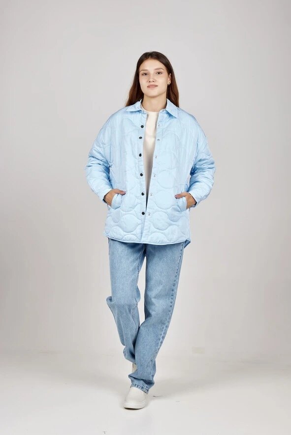 Стеганая куртка свободного силуэта без капюшона с отложным воротником. Застегивается на ряд металлических кнопок. Также дополнена двумя прорезными карманами. Отлично подойдет для осени и прохладной весны.