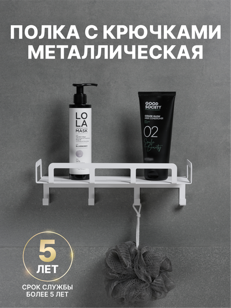 Полка для ванной на стену - это удобный и функциональный аксессуар, который поможет организовать пространство в ванной комнате или на кухне. Полка на кухню навесная сделана из прочного металла 1,5 мм. Полка для хранения ванных принадлежностей имеет белый цвет, что придает ей стильный и современный вид. Полочка в ванную с крючками может выдерживать высокую весовую нагрузку до 5 кг. Благодаря бортикам, содержимое держателя для ванной комнаты не выпадает, а надежное крепление обеспечивает прочность и долговечность изделия. Полочка для полотенец в ванную просто и надежно крепятся к стене с помощью дюбелей и саморезов, на которые предусмотрены заглушки в цвет. Полочка настенная навесная оснащена прочными крючками, на которые удобно вешать любые ванные принадлежности. Экологичная порошковая краска полки для ванной металлической нетоксична и безопасна для здоровья. Благодаря своей универсальности, подвесная полка может использоваться как в душевой кабине так и над раковиной. Декор для кухни на стену также может быть использован для посуды или кухонных принадлежностей. Держатель металлический - еще и прекрасный вариант грамотной организации кабинета, коридора, гостиной; спальни; детской и кухни. Настенная полка - место для банок и полка для специй; мельниц; солонок. Используйте как детскую мебельную полку для книг, игрушек, фотографий, как дополнение на кухню с крючками для полотенец или полку для моющих средств. Это продуманный органайзер для принадлежностей в прихожую, балкон, полка в коридор, в туалет над унитазом или над стиральной машинкой. Лаконичное и практичное украшение для кухни и комнаты по достоинству оценят любители грамотной организации пространств. Используйте наши полки для хранения кухонных принадлежностей или для демонстрации вашей коллекции предметов, и ваша кухня станет еще более уникальной и элегантной. Полка для ванной и кухни станет идеальным подарком на день рождения на новоселье на профессиональный праздник.