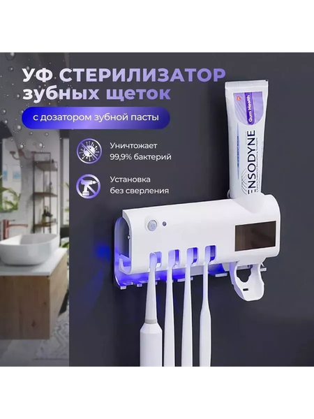 Представляем вам удобный и функциональный держатель для зубных щеток и пасты, который станет незаменимым аксессуаром в вашей ванной комнате. Наш держатель позволит вам наладить порядок на ванной полке или на стене, обеспечив удобный и компактный хранение зубных щеток и пасты. Он выполнен из высококачественного пластика, который отлично переносит влагу и очень прочный, что гарантирует долгую службу изделия. Специальные отверстия и крепление позволят разместить до нескольких зубных щеток и тюбика пасты одновременно. Это особенно удобно для семей с детьми, так как вы сможете хранить их зубные щетки отдельно от взрослых. Наши держатели идеально подойдут для установки на стене, предотвращая падение зубных щеток. Помимо этого, в комплекте идет дозатор для зубной пасты, который позволит использовать необходимое количество пасты без излишеств и улучшит гигиену процесса чистки. Дезинфектор зубных щеток с датчиком движения и УФ ультрафиолетовой лампой обеспечит хранение и дезинфекцию зубных щеток после каждого использования. Для крепления дозатора не нужно сверлить стену. Органайзер в ванную навесной с полочкой фиксируется на сверхпрочный двусторонний скотч. Не упускайте возможность приобрести такой удобный аксессуар для вашей ванной по доступной цене. Обеспечьте себя и своих близких комфортом и безопасностью во время утренней и вечерней гигиены. У нас есть все, что вам нужно для красивого и ухоженного улыбки!