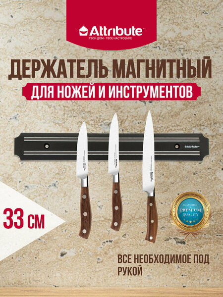 Магнитный держатель для ножей 33 см от Attribute - это незаменимый помощник на кухне, который поможет организовать пространство и сохранить порядок. Магнитный держатель оснащен магнитной поверхностью, что позволяет надежно удерживать ножи и ножницы. Это обеспечивает безопасность использования и предотвращает их случайное падение. Материал лезвия и подставки/держателя - пластик. Это гарантирует долговечность и устойчивость к износу, а также легкость и простоту в уходе. Общая длина держателя составляет 33 см, что позволяет разместить на нем до 3 ножей. Держатель имеет высоту 1.5 см и длину лезвия 33 см. Это делает его компактным и удобным для использования на любой кухне. Крепежные отверстия имеют диаметр 6 мм, что позволяет легко и надежно закрепить держатель на стене или другой поверхности. Магнитный держатель для ножей 33 см от Attribute - это стильный и практичный аксессуар для вашей кухни, который поможет поддерживать порядок и безопасность на рабочем месте.