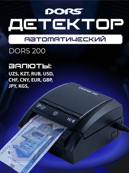 DORS 200 MULTI надежный помощник в проверке наличных. Автоматический детектор проверяет подлинность банкнот с помощью восьми уровней контроля, отображая результаты на экране. валюты: UZS, RUB, KZT, CNY, JPY, CHF, GBP, EUR. преимущества DORS 200 исключение человеческого фактора DORS 200 не требует дополнительных знаний от пользователя, т. к. самостоятельно принимает решение о подлинности купюры. всегда актуальная база валидации Простое обновление через USB позволяет легко загружать актуальную версию ПО и быть уверенным в качестве проверки. компактный размер Благодаря минимальным размерам DORS 200 позволяет сэкономить рабочее пространство продавца. А, наличие функции подачи банкноты под блок детекции позволяет поставить его вплотную к стене. удобство В работе Детектор принимает банкноты любой стороной и ориентацией, что сокращает время на операцию. А, вывод на экран номинала и суммы подлинных банкнот позволяет дополнительно проконтролировать выполненную проверку. безупречная детекция Благодаря линейки датчиков DORS 200 анализирует правильность расположения, качество исполнения и способ печати фрагментов изображений. Детектор осуществляет 7 видов проверки за 1 секунду