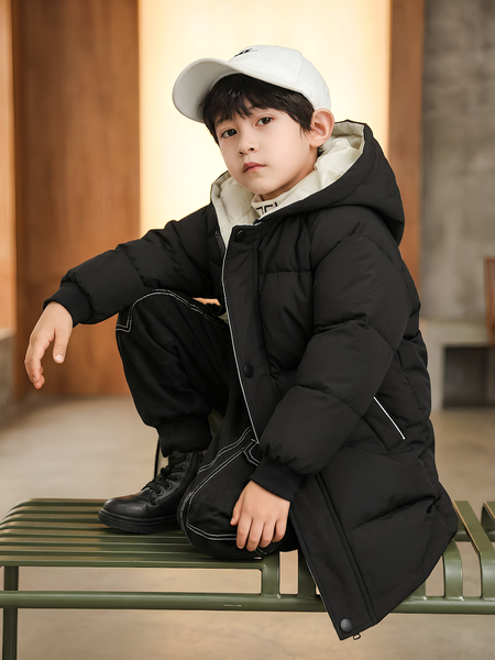 Тёплая и удобная зимняя детская куртка, которая отлично подходит для температуры от –5°C до +15°C. Удлинённый крой обеспечивает дополнительную защиту спины и поясницы. Модель представлена в двух популярных цветах: классический чёрный и небесно-голубой (Sky Blue).