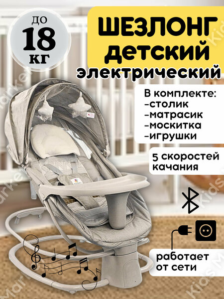 Детская электролюлька, шезлонг со столиком для кормления и креслом-качалкой - это современное комплексное устройство для ухода и развлечения малышей. Оно объединяет в себе несколько функций, помогая родителям успокаивать, развлекать и создавать комфортные условия для сна и отдыха ребенка. Подходит для детей от 3 до 18 кг, что позволяет использовать его в течение продолжительного времени по мере роста ребенка. Работа от сети с USB-разъёмом делает устройство удобным для использования в разных условиях, включая путешествия. В комплекте поставляется шнур с USB-разъёмом, который можно подключить к любому стандартному адаптеру от мобильного телефона. На корпусе качалки имеется вход для USB-флэшки, что позволяет воспроизводить аудиозаписи или любимые мелодии прямо с флэшки. Это расширяет возможности для развлечения малыша и создания уютной атмосферы. Качалка оснащена 15 встроенными мелодиями, которые помогут успокоить малыша и создать приятную обстановку для сна или отдыха. 5 уровней укачивания позволяют выбрать наиболее подходящий режим для успокоения или развлечения ребенка. Изготовлена из прочного пластика и оснащена надежными металлическими креплениями, что обеспечивает ее долговечность и устойчивость. Текстильное покрытие имитирует лен, делая его мягким на ощупь и комфортным для малыша. Устройство оснащено съемной дугой или мобилью с игрушками, которые висят над ребенком, стимулируя его развитие. Эти игрушки обычно яркие и безопасные, сделанные из мягких материалов. Столик для кормления позволяет кормить ребенка, не беспокоя его. Шезлонг работает от сети и подключается к любому стандартному адаптеру от мобильного телефона.