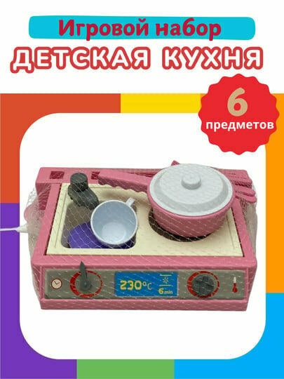 Детский игровой кулинарный набор – первые шаги вашего ребенка в мире кулинарии. Это отличный выбор для тренировки воображения, коммуникации и творческих навыков. Проявление творческих способностей: игрушка даст возможность вашему ребенку приготовить свое первое блюдо и почувствовать себя настоящим кулинаром: Безопасность во время игры: все детали выполнены из высококачественного пластика, что делает посуду прочной и безопасной для использования детьми. Все столовые инструменты не острые и малыш не поранится во время игры. Что входит в набор? · Игрушечная плита · Игрушечная раковина с краном · Набор посуды (сковорода, кастрюля) · Набор столовых приборов · Наклейки для украшения игрушек Развивающая игрушка: · Развивает воображение · Развивает навыки коммуникации · Развивает мелкую моторику Комплект посуды - это прекрасный подарок для вашего ребенка. Он не только развлечет и порадует как мальчика, так и девочку, но и поможет им научиться основам общения во время игры. Ваш ребенок может провести отличное время со своими друзьями, почувствовать себя чуть взрослее и научиться гостеприимству. Также подойдет для игры с куклами, помогая развивать воображение, мелкую моторику и внимательность малыша. Игровой набор подойдет для детей от 3 лет. Срок службы: 5 лет Набор посуды с плитой и раковиной состоит из 6 предметов, упакованная посуда в сетку. Размер 30 х 25 см Дополнительные свойства