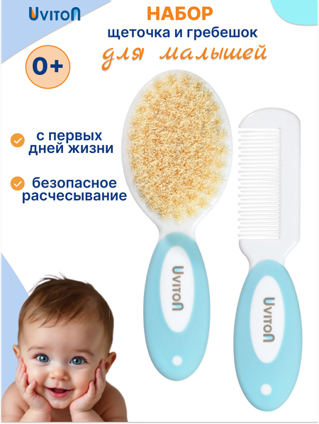 Расческа для новорожденных с щетиной с расческой-гребешком от Uviton создана специально для нежного ухода за детскими волосами новорожденного и деток постарше. Расческа с мягкой щетиной и расческой-гребешком позволит наиболее комфортно ухаживать за волосами и кожей головы малыша. Современный дизайн, эргономичная ручка. Расческа детская аккуратно расчесывает, заботится о волосах. C помощью расчески с частыми, но не острыми зубчиками удобно расчесывать запутавшиеся и скатавшиеся волосы, а с помощью щетки можно пригладить их и придать аккуратный вид. Светлая корочка на голове у новорожденного обычное явление, которое возникает из-за дисбаланса в работе сальных и потовых желез. Самый эффективный и безопасный способ избавления от себорейных корочек аккуратное размягчение и вычесывание с помощью расчески. Щетка для новорожденных идеальная для массажа кожи головы, при расчесывании стимулирует кровообращение, помогает избавиться от "корочек". Щеточка для волос для новорожденных изготовлена из мягкой щетины. Антистатическая - не электризует волосы. Закруглённые зубцы безопасны в комплекте: щетка и гребешок (уход для волос). Удобное хранение теперь гребешок не потеряется, его можно прикрепить в щеточке экономя место для хранения аксессуара. Специальные детские расчески не травмируют нежную кожу и бережно воздействуют на мягкие ткани детской головки, стимулируя при этом рост новых волос. Аксессуары для новорожденных соответствуют самым высоким требованиям, предъявляемым к детским товарам, они практичны и просты в уходе. Набор расчесок для малышей изготовлены из прочных безопасных материалов, не содержит Бисфенол А (BPA free). Набор для волос соответствуют требованиям безопасности детской продукции ТР ТС- все наши детские товары для новорожденных безопасны и имеют сертификат соответствия. Вместе с одеждой для новорожденных набор расческа и щетка прекрасно дополнит подарочный комплект на выписку в роддом, а так же это отличный подарок на выписку, на первый день рождения ребенка или Крестины. Цветовая гамма подходит для девочки и для мальчика. Малыш останется доволен, а родители смогут получить максимум радости от тактильного общения со своим малышом! Гигиена и уход товары для малышей, массажная расческа. Размер щеточки: 14см х 5см х 2,5см; размер гребешка: 14см х 3см х 0,5см. Щетина 2см. Гребень: 14см х 3см х 0,5см.