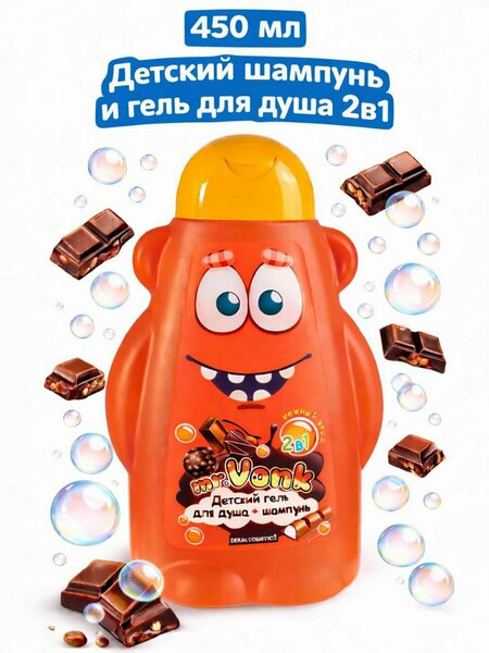 Детский гель для душа и шампунь Mr.Vonk, 2 в 1 с ароматом шоколада, 450 мл