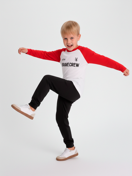 Модель имеет прямой крой, который не стесняет движений, что особенно важно для активных мальчиков. Классический круглый вырез горловины и длинные рукава делают лонгслив универсальным предметом одежды — его можно носить как самостоятельно, так и под свитшот, толстовку или жилет.
