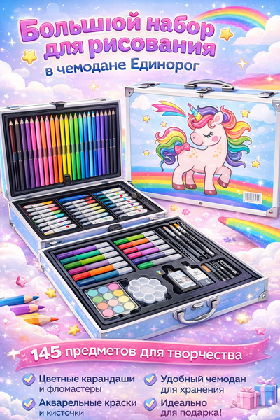 Детский набор для рисования – большой art set с дизайном единорога