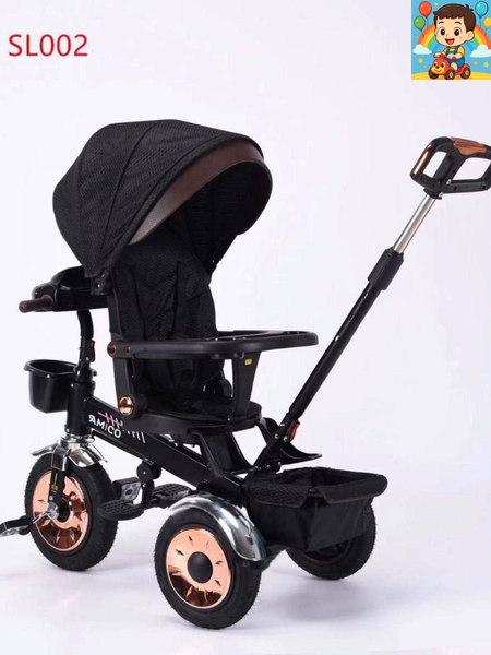 SL002 — это современный и безопасный трехколёсный детский велосипед-коляска, разработанный для комфортных прогулок. Прочная металлическая рама, широкий козырёк, удобное сиденье и родительская ручка делают модель максимально удобной. Большие колёса обеспечивают мягкое движение, а передняя защитная дуга повышает безопасность. Снизу расположена большая корзина для игрушек и покупок. Преимущества модели: Широкий солнцезащитный козырёк Удобное и безопасное сиденье Родительская ручка для управления Крупные и прочные колёса Передняя защитная дуга Вместительная нижняя корзина Отличный выбор для удобства ребёнка и родителей!