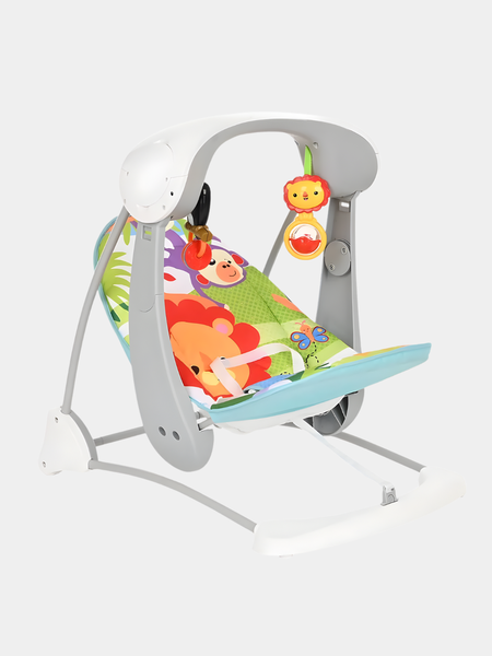 Электрокачели станут незаменимым помощником в семье с младенцем: они гарантированно подарят комфорт малышу и избавят от множества забот его родителей. Стальной корпус изготовлен из прочного материала, ткань подкладки мягкая и удобная, заботится о детской коже. Милые игрушки стимулируют ребенка к подтягиваниям и желанию схватить игрушки ручками, тренируют координацию рук и глаз, тем самым улучшают хватательные и зрительные рефлексы. Характеристики: Дуга с пластмассовыми игрушками Музыка, регулятор громкости 3 режима качания 3-точечные ремни безопасности Мягкий съемный подголовник Питание от сети или от батареек Необходимы 4 батарейки типа АА/LR6 1,5V (в комплект не входят) 1 положение ложа Съемный чехол (деликатная стирка) Максимальная нагрузка: 9 кг Рекомендуемый возраст: с рождения (от 3 кг) до 9 месяцев Размеры: 67х51х63 см Размеры в сложенном виде: 73х50х20 см Размеры упаковки: 52х50х16 см Вес: 4.3 кг Вес с упаковкой: 5 кг