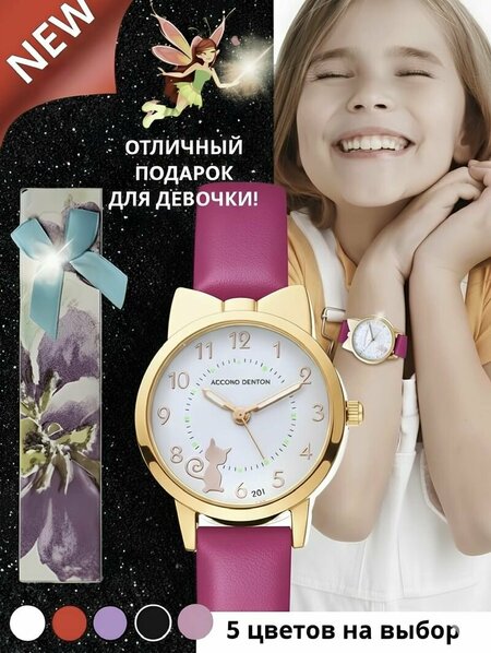 Достоинства:красивые, рабочие, с котиком, подошли на маленькую ручку Недостатки:не обнаружил Комментарий:отличные часы, работают, пришли в красивой коробочке, дочке очень понравились