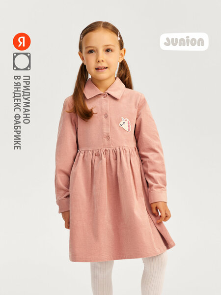 Junion Wear — это бренд одежды для детей, придуманный в Яндекс Фабрике настоящими родителями. ㅤ Платье Junion Wear подойдёт для девочек от 1,5 до 6 лет. Сшито из мягкого микровельвета — это смесовой хлопок с добавлением спандекса. Материал приятный на ощупь, бархатистый и немного тянется, хорошо держит форму и долго сохраняет аккуратный вид. ㅤ Модель выполнена в формате платья-рубашки со свободной юбкой со сборкой. Линия талии немного завышена, чтобы ничего не давило ребёнку на живот. На груди — патч в форме единорога, который добавляет игривый акцент. ㅤ Такое детское платье подходит для праздников и повседневных прогулок и легко сочетается с кардиганами и свитерами из коллекции Junion Wear.