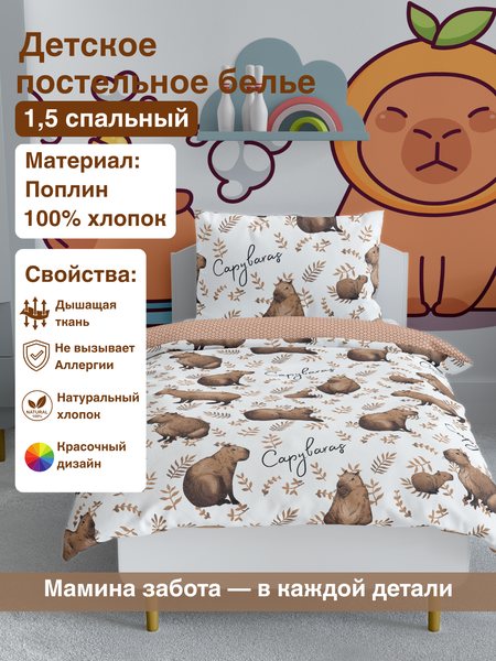 Представляем детский комплект постельного белья от Bahmal Home, идеально подходящий для кроватей. Яркие и милые рисунки в сочетании с мягкой и прочной тканью создадут уютную атмосферу в комнате вашего ребёнка, способствуя крепкому и комфортному сну. Состав комплекта: Пододеяльник: 215×150(±2) см Простыня: 220×150(±2) см Наволочка: 50×70 см с клапаном Комплект изготовлен из поплина — экологичной ткани из 100% хлопка, которая хорошо впитывает влагу, отличается долговечностью и простотой в уходе. Сертифицированное и гипоаллергенное бельё соответствует стандартам ГОСТ, что делает его безопасным и подходящим для детских кроваток различных типов. Bahmal Home заботится о том, чтобы ваш ребёнок чувствовал себя комфортно ночью, обеспечивая ему приятное пробуждение и радостное начало каждого нового дня.