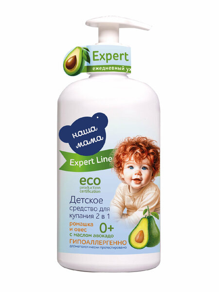 Детское средство для купания 2 в 1 для волос и тела на основе отваров трав идеально подходит для гигиены малышей с нежной кожей. Благодаря моющей основе с маслом авокадо и отвару трав с активными натуральными компонентами ромашки и овса, средство нежно очищает кожу, устраняет покраснения, раздражение и шелушение кожи. Растительные компоненты глубоко увлажняют, смягчают, питают и успокаивают кожу ребенка, оказывая противовоспалительное действие. Экстракт ромашки в составе оказывает противоаллергенное действие и снимает покраснения. Растительные экстракты оказывают заживляющий эффект, снимают зуд и раздражение, способствуют устранению стянусти и смягчают особо сухие участки кожи. Масло авокадо, в составе средства, бережно успокаивает кожу, обеспечивает мягкое увлажнение и питание кожи. Дополняя свойства друг друга, активные компоненты, входящие в состав средства для купания, способствуют комфортному и полезному купанию и мытью детских тонких волос. Детский гель разработан с учетом естественного pH кожи малыша, не раздражает глаза и обладает гипоаллергенными свойствами. Показан педиатрами для гигиенических процедур с рождения, подходит для регулярного, ежедневного купания ребенка. Применение: добавьте небольшое количество геля в воду или нанесите его на губку, руку или волосы малыша, вспеньте, вымойте тело или голову малыша, а затем ополосните чистой, теплой водой.