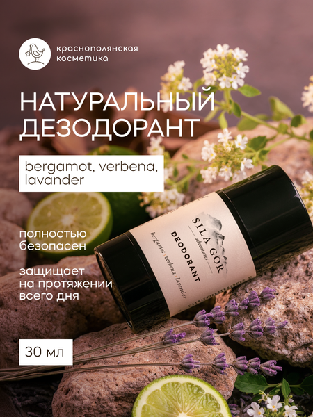 Натуральный дезодорант-стик «Сила Гор №2» Надежная защита и свежесть на основе сил природы Парфюмированный дезодорант-стик «Сила Гор №2» от Краснополянской Косметики — это гармония натуральности, эффективности и изысканного аромата. Это идеальное решение для ежедневной защиты, которое обеспечивает уверенность и комфорт на протяжении всего дня. Натуральный дезодорант создан для тех, кто ценит бережный уход и естественную свежесть. Ключевые преимущества: Эффективная защита от запаха: Надежно нейтрализует неприятные запахи, обеспечивая длительное ощущение чистоты и свежести даже в самые активные дни. Натуральный состав: Без алюминия, спирта и синтетических отдушек. Гипоаллергенная формула подходит для чувствительной кожи, обеспечивая бережный уход без раздражений. Удобный формат: Стик легко наносится, не оставляет следов на одежде и идеально помещается в косметичку или сумку для использования в любое время. Изысканный аромат: Цветочно-цитрусовый букет с нотами бергамота, вербены и лаванды дарит ощущение свежести и гармонии, превращая ежедневный ритуал в момент наслаждения. Почему стоит выбрать этот дезодорант? Подходит для ежедневного использования и активного образа жизни. Сочетает эффективность и натуральность без компромиссов. Экономно расходуется благодаря плотной текстуре. Натуральный дезодорант от запаха «Сила Гор №2» — ваш надежный спутник в заботе о естественной свежести и уверенности.