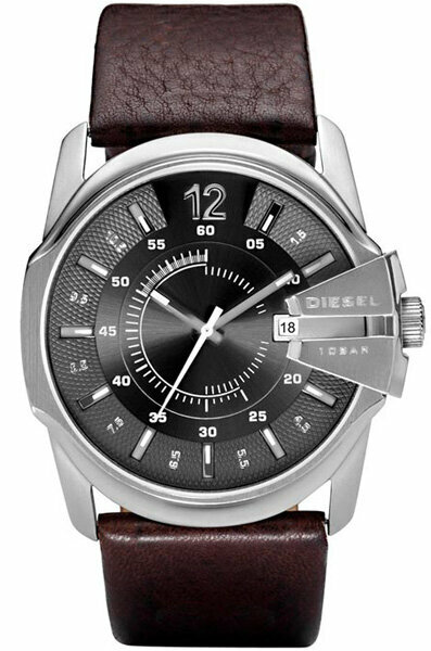 Мужские кварцевые наручные часы Diesel DZ1206 коллекции Master Chief. На данной модели отображается дата. Стрелки и метки покрыты люминесцентным напылением (светятся в темноте). Завинчивающаяся задняя крышка. Кожаный ремешок. Водонепроницаемость WR100 (10 атм).
