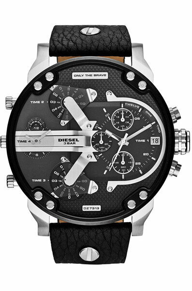 Мужские кварцевые наручные часы с хронографом (секундомером) Diesel DZ7313. Данная модель имеет 4 независимых циферблата. На данной модели отображается дата и время суток (24-х часовая шкала). Секундомер может отсчитывать до 60 минут. Кожаный ремешок. Стрелки и метки покрыты люминесцентным напылением (светятся в темноте).