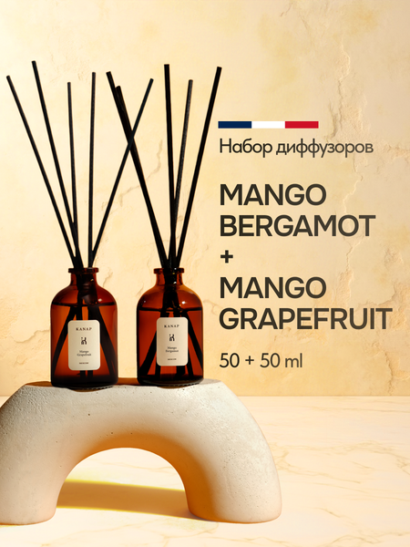 Ароматический диффузор для дома KANAP с палочками 50 мл+50 мл - это стильный и элегантный аксессуар, который создает особую атмосферу в пространстве. Два аромата - Mango Bergamot и Mango Grapefruit - неповторим и не похож ни на какие другие. Свежий, экзотический и фруктовый запах манго в сочетании с цитрусовым терпким древесным бергамотом создает ощущение чистоты и комфорта. Тропический аромат манго и грейпфрута захватывает в плен с первых секунд, сочетая ароматные сочные фрукты, которые будоражат наше воображение. Парфюм создается вручную из экологического французского сырья самого высокого качества. Вся продукция KANAP сертифицирована и полностью отвечает международным требованиям по безопасности использования. Ароматический диффузор KANAP подчеркнет дизайн интерьера и создаст ощущение комфорта, спокойствия и уюта в пространстве. Особенности: - Набор из двух упаковок по 50 мл каждая - Ручной принцип работы - Прозрачный цвет товара - Безопасно для детей, животных и аллергиков - Гипоаллергенное средство - Устранение неприятных запахов - Подходит для использования в различных помещениях: комнатах, гостиной, общественных местах, ванной и туалетной комнате - Содержит натуральные масла - Не содержит спирта Создайте уникальную атмосферу с KANAP и наслаждайтесь приятным ароматом в вашем доме или офисе.