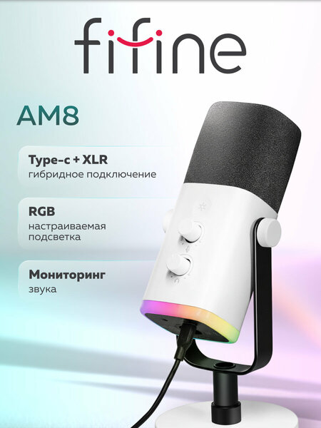 Микрофон FIFINE AmpliGame AM8 (White) — это отличный выбор для тех, кто ищет качественный динамический USB/XLR микрофон.