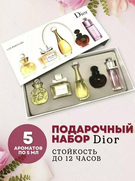 Подарочный набор Dior “Les Parfums” — это воплощение элегантности, стиля и утончённости. В комплект входят 5 культовых мини-ароматов по 5 мл, позволяющих погрузиться в мир самых популярных парфюмов Dior. ✨ Для кого этот набор? Для современных женщин, которые ценят красоту и индивидуальность Для тех, кто любит менять образы и экспериментировать с ароматами Для тех, кто ищет стильный, дорогой и эффектный подарок Почему именно этот набор? Подборка лучших и самых известных женских ароматов Dior Оригинальные миниатюры в премиальном исполнении Идеальный формат для сумочки, путешествий и ежедневного использования Элегантная фирменная упаковка — идеален как подарок Каждый аромат дарит своё настроение и подчеркивает женственность Этот набор — идеальный способ познакомиться с ароматами Dior, подобрать свой идеальный парфюм и наслаждаться роскошью каждый день.