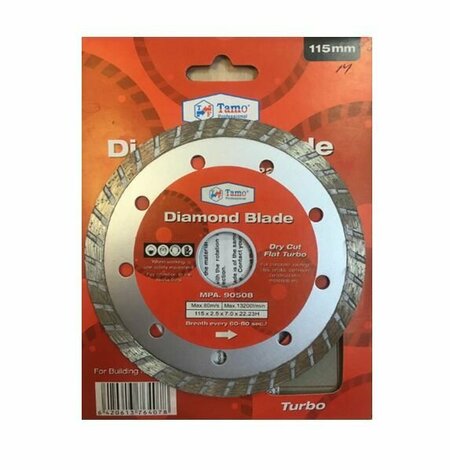 Диск алмазный 115 × 2.5 × 7 × 22.23 турбо TAMO Тамо Диск алмазный 115 × 2.5 × 7 × 22.23 турбо TAMO Компания Tamoline производит алмазные диски TURBO, ориентированные на выполнение широкого спектра задач при работе с каменными, бетонными, кирпичными и металлическими материалами. При выборе диска следует учитывать тип его резки (мокрая или сухая), который зависит от способа крепления алмазных сегментов. Если они напаяны серебряным припоем, то работа диска возможна лишь с водяным охлаждением, если же при креплении использовалась лазерная сварка, то такие диски могут использоваться и для сухой резки.