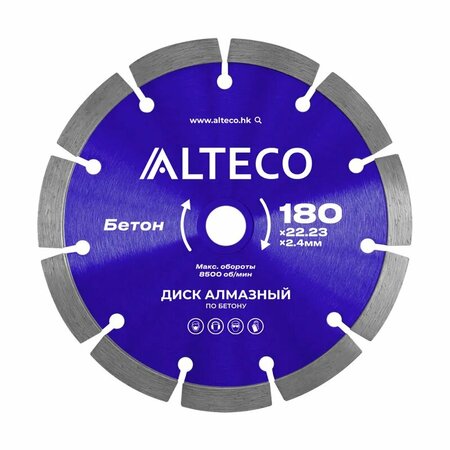 Диск алмазный ALTECO 180x22.23x2.4мм - применяется для сухого реза по бетону. Толщина алмазного сегмента - 2.4 мм. Внимание! При эксплуатации алмазного диска необходимо соблюдать технику безопасности и меры предосторожности. Сухой рез - диск может выполнять рез как без охлаждающей жидкости, так и с ней. Благодаря охлаждению режущая оснастка прослужит дольше. *Внимание, изображение товара может отличаться от реального! Правильные параметры указаны в технических характеристиках товара.