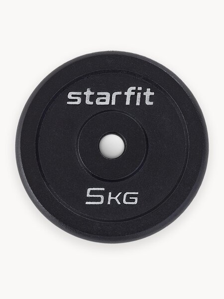 Блин для штанги чугунный STARFIT, вес 5 кг, d=26 мм, цвет черный