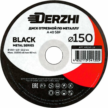 Диск отрезной DERZHI "BLACK", по металлу, 150 x 1,8 x 22,2 мм