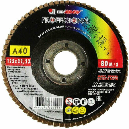 Круг лепестковый торцевой Луга-Абразив используется совместно с угловыми шлифмашинами для торцевого и плоского шлифования изделий из металла, дерева, пластмассы, зачистки сварных швов и заусенцев, снятия ржавчины и т. д. Круг изготовлен на гибкой основе, имеет высокую производительность и износостойкость. Безопасность соответствует требованиям ГОСТ 52588-2011 И EN 13743