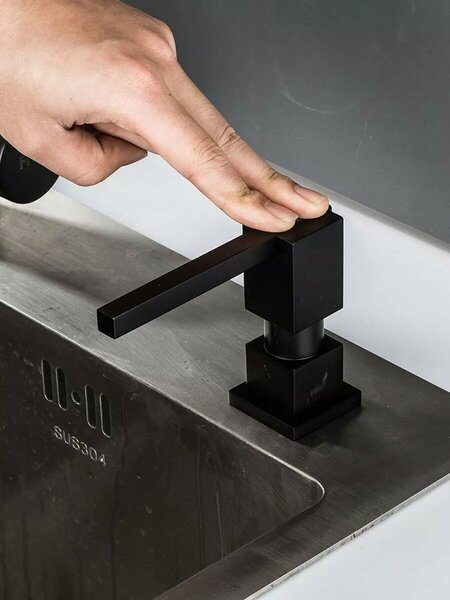 Диспенсер кухонный встраиваемый для мытья посуды для моющего средства черный G404-1. Дозатор для жидкого мыла встраиваемый в столешницу, раковину - это идеальное решение для обустройства кухни. Скрытый тип размещения емкости позволяет сохранить интерьер комнаты максимально разгруженным. Дозатор врезной устанавливается в отверстие в столешнице диаметром от 25 мм до 35 мм и фиксируется при помощи винтового крепления. Допустимая толщина столешницы раковины от 1 мм до 50 мм. Состоит из латунного корпуса, устойчивого к ржавчине и коррозии и пластиковой колбы объемом 300 мл. Кухонный дозатор черный приятно откликается на нажатие и поворачивается в любую сторону на 360 градусов. Диспенсер для моющего средства на кухню удобно заполнять сверху, достаточно приподнять верхнюю часть. Его можно заполнить жидким мылом, средством для мытья посуды, кремом для рук, шампунем, бальзамом для волос или гелем для душа и использовать как для ванной так и для кухни. Диспенсер механический - это отличное решение для дома, сочетание качества и функциональности. Современный дизайн дозатора впишется в любой интерьер и поможет навести порядок на кухне, а его качество прослужит не один год. Диспенсер для жидкого мыла встраивается в поверхность кухонной мойки или в столешницу. В его состав входит мощная помпа из латуни и пластиковой емкости - колбы объемом 300 мл. Удобно заполняется сверху. Для этого необходимо приподнять верхнюю часть диспенсера и залить в колбу необходимое количество, не снимая конструкцию. Врезной дозатор для моющего средства прост в уходе: достаточно протереть и промыть его теплой мыльной водой. Диспансер разгрузит пространство от лишних флаконов с моющими и идеально впишется в интерьер с любым смесителем, так же подчеркнет индивидуальность Вашей раковины как дома, так и на даче. Встраиваемый диспенсер с помпой очень многофункционален и подойдет как и для ванной, так и для кухни