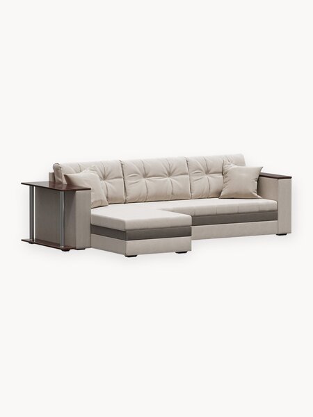 - Универсальность расположения угла дивана - конструкция предполагает расположение и на левый, и на правый бок, как и ручки со столиком
