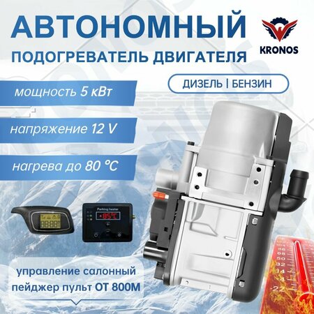 Предпусковой подогреватель двигателя 12В (ПЖД, мокрый фен, автономка, автономный отопитель, подогреватель антифриза, жидкостный подогреватель) - аналог высокого качества Вебасто, Планар, Эбершпехер, Бинар! Мощность 5 кВт, разогревает антифриз/тосол до 80 градусов. За 15-20 минут двигатель прогревается полностью. Автосила тепла Предпусковой подогреватель (ПЖД) - отличная вещь, которая позволит не переживать за запуск вашего авто в суровые Российские морозы. Мокрый фен запускается дистанционно, с помощью пульта и прогревает систему охлаждения двигателя. Технические характеристики D5-YК (брелок) Бренд: Автосила Тепла Тип топлива: Дизель/бензин Расход топлива: 0,45-0,6 L/Н (Литров/час) Температурный диапазон работы: -40+85 °С. Мощность: 1,0-5,0 кW (кВт) Напряжение/Вольтаж: 12 V Вес нетто: 2,3 кг Вес брутто: 5,1 кг Размер: 42,7х40х22 см Универсальный дизельный отопитель модель D5 12 Вольт - это универсальный жидкостный подогреватель, который работает независимо от двигателя. Этот компактный подогреватель имеет тепловую мощность 5 кВт и предназначен для предварительного нагрева двигателя автомобиля, что исключает холодный запуск двигателя и продлевает его срок службы. Может одновременно работать со штатным отопителем салона автомобиля, чтобы нагревать воздух в пассажирском салоне в холодное время года. Поскольку подогреватель связан с системой охлаждения автомобиля, то нет необходимости в дополнительном воздуховоде для подачи теплого воздуха в пассажирский салон. В чрезвычайно холодных условиях D5 автоматически помогает двигателю достигать и поддерживать заданную рабочую температуру, если рабочая температура двигателя не может быть достигнута самим двигателем , может также использоваться в качестве обогревателя для автономных радиаторных систем отопления с максимальной вместимостью теплоносителя 30 литров. Дизельный подогреватель ПЖД Автосила тепла D5, отлично подойдет для прогрева, до рабочей температуры, двигателя с объёмом охлаждающей жидкости до 15 литров, до его запуска. Так же мы рекомендуем этот подогреватель тем, кто хочет использовать его в качестве нагревателя в жидкостной системе отопления автодомов / кемперов или катеров и яхт.