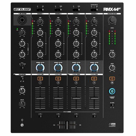 Цифровой DJ-микшер Reloop RMX-44BT, может использоваться для выступлений и случаев когда необходима мобильность.