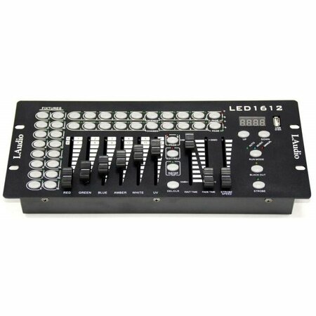 LAudio DMX-LED-1612 DMX Контроллер. DMX 512 & RDM протокол. Управление 192 DMX каналов. Контроль до 12 приборов, каждый по 16 каналов.6 шин, каждый до 240 градаций, может управлять шинами одновременно. Возможность запоминания последнего сценария, в случае отключения питания. Вес: 1,5кг.