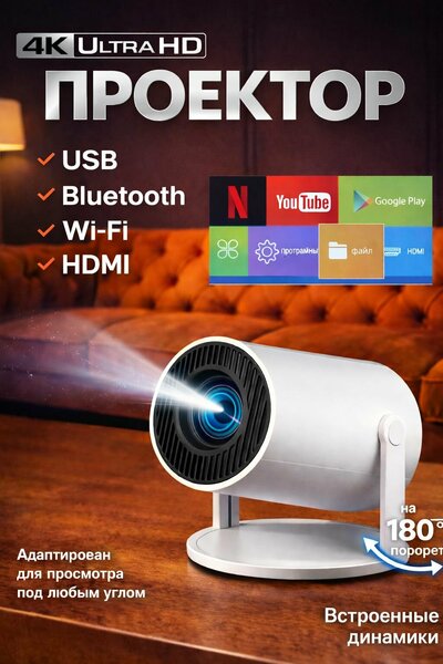 Современный домашний проектор — идеальное решение для фильмов, сериалов, игр и презентаций. Он позволяет превратить любую комнату в настоящий домашний кинотеатр и наслаждаться просмотром на большом экране с диагональю до 200 дюймов. Яркое и чёткое изображение обеспечивает комфортный просмотр как днём, так и вечером. Проектор поддерживает подключение к смартфону, ноутбуку, планшету и игровой приставке, а также оснащён интерфейсами Wi-Fi, Bluetooth, HDMI и USB, что делает его универсальным для различных сценариев использования. Автофокус и удобное управление с пульта позволяют быстро настроить изображение без лишних усилий, а встроенные динамики обеспечивают качественный звук без необходимости подключения дополнительной акустики. Компактный размер и современный дизайн позволяют легко разместить проектор в любой комнате — в гостиной, спальне, детской или даже взять с собой на дачу. Проектор подходит как для домашних развлечений, так и для рабочих задач, сочетая в себе простоту использования, функциональность и высокое качество изображения. Это практичный выбор для тех, кто ценит комфорт, технологии и впечатления большого экрана у себя дома.