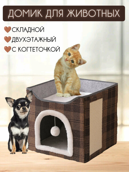 Домик для кошки легко складывается и раскладывается, что делает его удобным в хранении и транспортировке. Преимущества : - Два спальных места; - Когтеточка на боковой стороне; - Коврик- лежанка для каждого этажа; - С подвесной игрушкой; - Мобильность конструкции - легко при необходимости сложить и убрать Этот домик для животных станет отличным выбором для тех, кто ценит комфорт и уют для своих питомцев. Он обеспечит им безопасное и комфортное место для игр и отдыха.