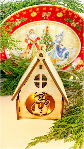 Новогодний домик (елочное украшение, предмет интерьера) принесет праздничное настроение в Ваш дом. В кругу семьи Вы проведете незабываемые вечера- сборка домика, раскрашивание красками, гуашью, фломастерами. Одна часть крыши открывается. Внутрь можно поставить электро свечу, положить сладости и сюрпризы. Имеется крепление для подвески. Экологичный подарок выполненный своими руками запомнится надолго. Домик поставляется в разобранном виде. Сборка интуитивно понятная. Комплект из 8 частей. Размер в собранном виде: высота 12 см, ширина 8 см, глубина 6 см.