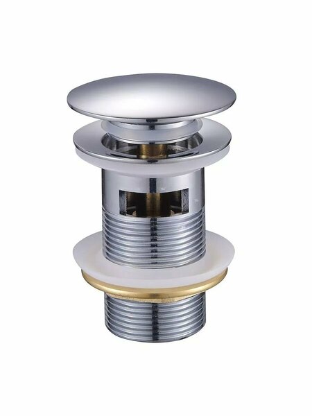 "• Цвет: хром • Поверхность: глянцевая • Материал: латунь • Форма: круглая • Управление сливом: клик-клак • Наличие перелива: есть • Подключение к канализационной трубе: 3,2 см • Размеры: Ø6,6см х 7,8 см"