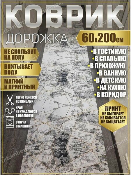 Комнатные коврики в ассортименте с невероятно красивыми и разнообразными принтами! Палас абсолютно без запапха изготовлен из высокотехнологичных и экологичных материалов: верх коврика - полиэстер с принтом, подложка коврика - синтетический войлок с точечным нанесением 100% ПВХ чтобы ковер не скользил. Подложка не крошится, не сыпется, не отпадает, не разрушается. Ковёр гибкий и мягкий, не большие размеры можно стирать в стиральной машине! Принт напечатан ультрасовременным промышленным тканевым принтером. Отлично режется ножницами, при этом края не нуждаются в дополнительной обработке, без оверлока. Моется водой под душем и всеми доступными моющими средствами, прекрасно выметается и пылесосится. Влаговпитывающий и быстросохнущий идеален для ванной комнаты. Размер этого ковра: 60х200 , 200*60 , 200х60