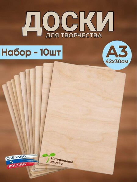 Заготовки из фанеры А6, А5, А4, А3 формата представляют собой набор досок для творчества любого вида. Доски-заготовки для творчества могут стать как подарком к празднику, так и приятной открыткой для поздравления и поэтому актуальны всегда. Заготовки для творчества сделаны из качественной березовой фанеры 3 мм, дополнительно отшлифованы и имеют закругленные края. Тщательно отшлифованные с двух сторон наборы досок не имеет острых углов, доски для выжигания и росписи из дерева безопасны для использования в работе. Доски-заготовки пригодятся на уроках труда и на уроках в художественных школах и студиях. Наборы досок хорошо подходят для развития ребенка, так как рукоделие и творчество играет важную роль в этом, а наборы станут лучшим подарком. Выжигание по дереву помогает развивать фантазию. Доски для выжигания позволят ребенку вместе родителями делать поделки для творчества своими руками. Наборы досок из фанеры можно использовать, чтобы делать любые поделки с ребенком. Доски-заготовки также можно использовать как фанеру для лазерной резки. Отшлифованные фанерные доски есть в разных размерах: Формат А6 - 105х148 мм. Формат А5 - 148х210 мм. Формат А4 - 210х297 мм. Формат А3 - 297х420 мм. Размер указан на фото