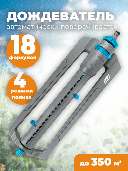 Данный дождеватель обеспечивает равномерный прямоугольный полив без пропусков площадью до 350 м2. В основе механизма - специальная вращающая головка, которая создает несколько перекрывающихся струй воды, что обеспечивает равномерное и тщательное орошение по всей площади. Тех. характеристики: 18 форсунок В комплекте фильтр и игла для прочистки сопел; Площадь полива: до 350 м2; 4 области распыления: левая, правая, средняя или полная; Дальность полива: от 5 до 15 м. Корпус выполнен из ударопрочного пластика, что делает дождеватель надежным и долговечным. Он устойчив к механическим повреждениям и способен прослужить Вам долгое время. Кроме того, корпус из пластика делает дождеватель легким и удобным в использовании. В комплект входит специальная игла, которой можно прочистить загрязненные форсунки.
